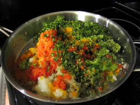 Heat oil in a large pan, once it's shimmering, add your vegetable mix. Lower the